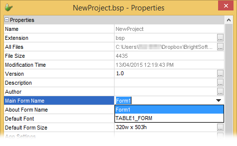 We now want to set this new form as the main form for this application. First we need the Project – Properties window. We can: