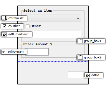 In the Item Form, change the tab order of comboItemList to 1, cbOther to 2, efOtherDesc to 3, efAmount to 4.
