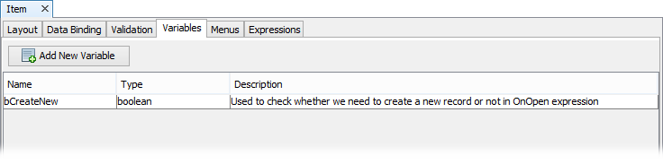 Next we need to create a form to accept new expense entries. Create a form called Item with the following components: