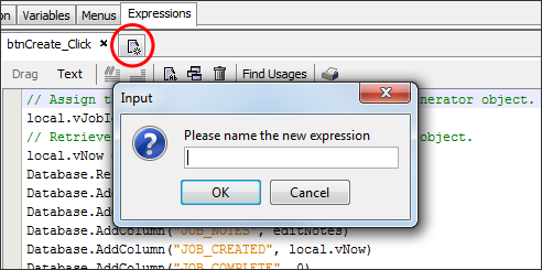 New Job Header and Detail records may be created via Expressions utilising the Database Object.