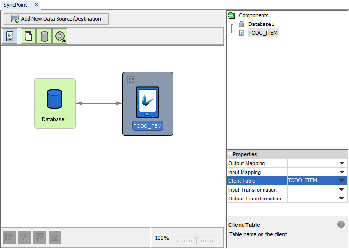 Create a new Sync Point by right clicking the Sync Points node and selecting ‘New Sync Point’. Drag and drop a database Data Source in this newly created sync point.