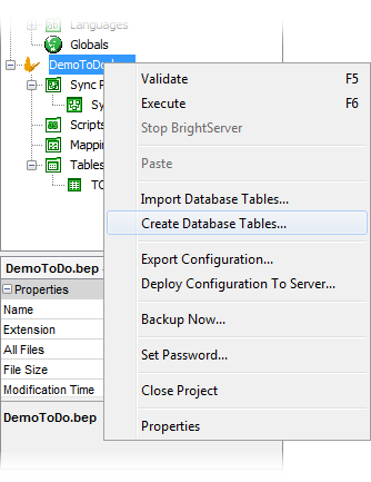Create a new BrightXpress project for BrightForms named DemoToDo.bsp.