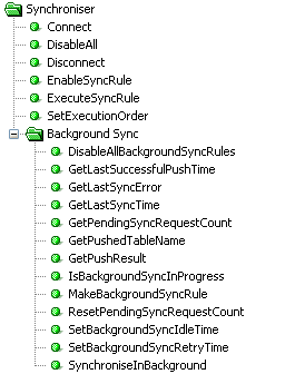 Expression wise, in addition to enabling the sync rules like the Sync dialog method, all rules to be synchronised must also be flagged to be done so via the Synchroniser.MakeBackgroundSyncRule() method. Furthermore, instead of Form.ShowSyncDialog(), Synchroniser.SynchroniseInBackground() is used instead, which signals the background sync thread to execute enabled Background Sync rules. The result able to be retrieved via the Synchroniser.GetLastSyncError() method.