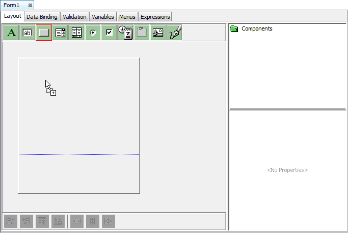 Designing forms is handled via the Form Layout Editor in BrightBuilder. This screen allows users to modify and preview the visual look of the form, via dragging and dropping form controls in the 'What You See is What You get' - WYSIWYG editor. Follow the steps below to add a label, edit control and button to the form.