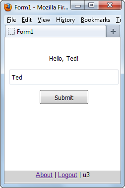 Try out the application created using the steps above, by typing in your name and clicking the submit button.