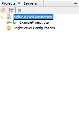 The new project will be created and opened Projects panel of BrightBuilder. Click on the [+] to expand the project elements.