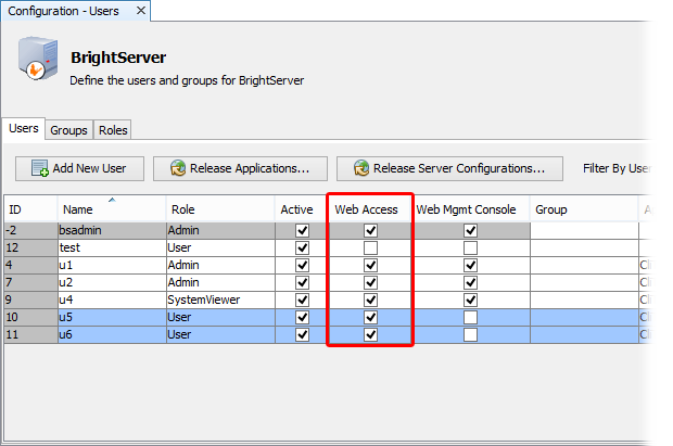 A new user will appear in the table. Locate the Web Access column in the table, and ensure it is selected to enable BrightWeb usage.