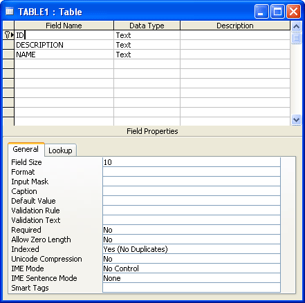 Download and open ODBCTutorialStart.bep. This is the starting point of this tutorial. The file is a simple BrightServer project, with TABLE1 copied from the ODBCTutorial.bsp application. The ODBCTutorial.mdb file is a Microsoft Access Database file, with the equivalent table definition, as well as 5 records.