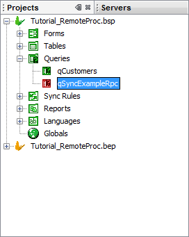 After opening RemoteProcStart.bsp in BrightBuilder, complete the exercise by linking the BSP's queries, sync rules and listview control to the BrightServer instance set up, as defined by the BrightServer configuration. Review where necessary the executeRPC() method in the 'ScriptCustomerList' script for the inputs/outputs of each to transfer into the BSP.