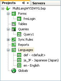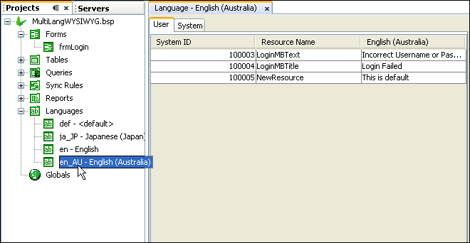 Locales of a project may be managed by “Languages” node in the projects panel. Here, strings or text may be viewed and edited easily and efficiently across a number of different languages or locales, while still maintaining all the application’s core functionality.