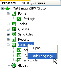 When a locale is defined, it is defined for the whole project. A new locale or a language is added to a project using the Languages component in a project.