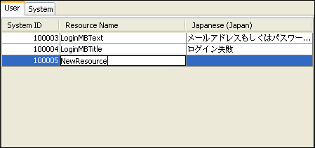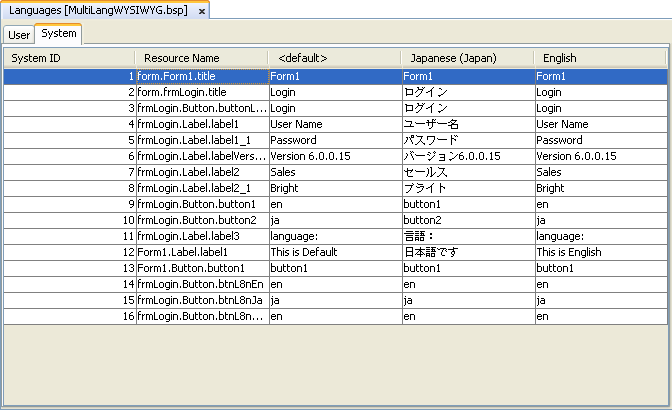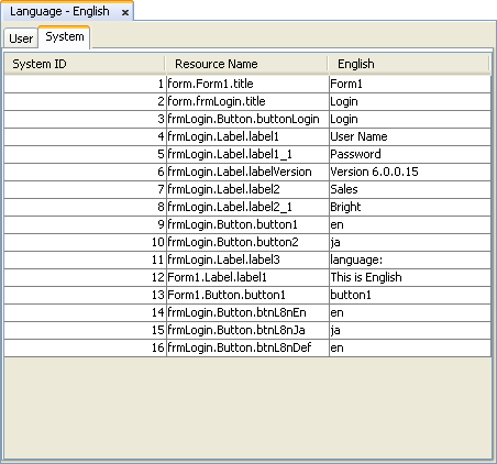 System – anything with a caption. When controls are made, they will be recorded automatically as a resource under this tab, and have their resource names and values populated automatically with their location and caption properties respectively.