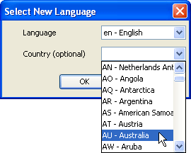 Select a locale and then click OK.