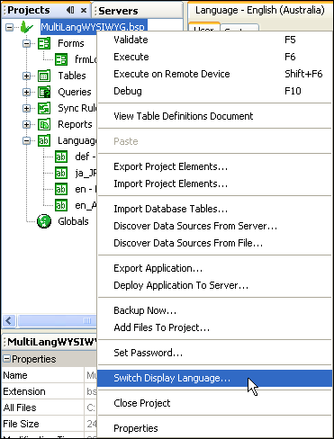 Select “Switch display language” dialog which will be populated with all the locales specified under the languages node.