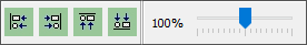 The Application Panel also provides alignment and zoom functionality to better visualise the components laid out in the Application Canvas. On the bottom of the Application Panel, various alignment buttons are provided to allow for multiple dialog components be aligned. In what direction they are aligned depends on the chosen alignment button pressed; the components can be left, right, top or bottom aligned. The alignment buttons will only be enabled when two or more dialog components are selected. Furthermore, zooming is provided for the Application Canvas through the zoom dial found on the bottom of the Application Panel. A zoom percentage can be specified through this dial with a minimum of 10% and maximum 300% zoom factor.