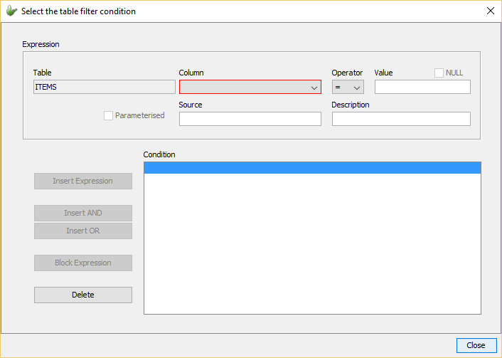 the table filter condition' window will be shown. Through