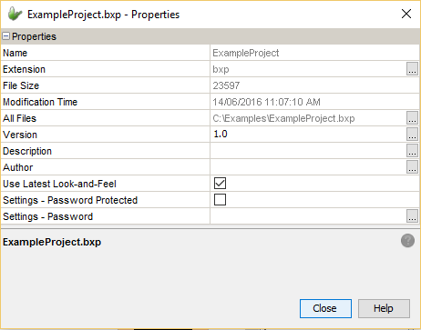 In addition to these nodes, the project node itself has a set of properties which may be accessed either by right clicking on the node and selecting the 'Properties' option, or selecting the project with the Properties panel open. The properties listed are a subset of a BSP's (BrightForms Project's) properties. The project node also contains a range of context menu actions, also common with BSP projects. For more information, please refer to the Projects chapter of BrightBuilder.