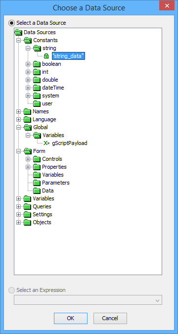 Click on the customiser button, the Choose a Data Source dialog box will appear. This dialog box contains the Data Source tree available for the sync rule query parameters. Refer to the figure below: