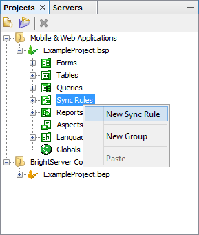 To increase productivity and convenience in developing Bright Applications, a built-in synchronisation engine was developed. The goal of synchronisation is for two disparate data sources one in the client i.e. handheld PC, the other in the database server, to contain the same data, so that the users can work with the data on the client and server with equal ease. The Sync Rules control how the Bright Application accomplishes this goal.