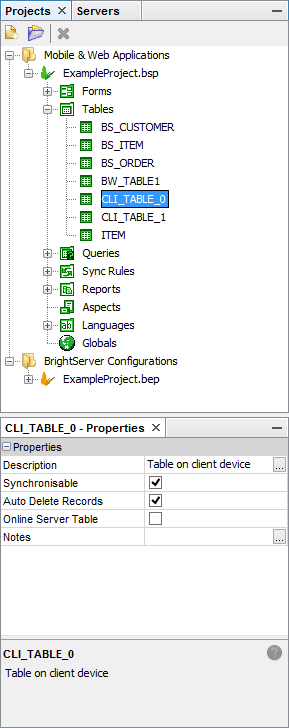 An online server table is not created in the client database and is represented with this icon under the Tables subtree. Online server tables does not have to have the same physical attributes as those in the Server database, these are usually used for online queries to view a snapshot of the server tables online.
