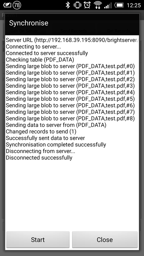This will synchronise the binary data for each record into the device's database and vice versa. In BrightForms, data may be read from database columns into controls, such as scribble and images, and variables by querying the database.