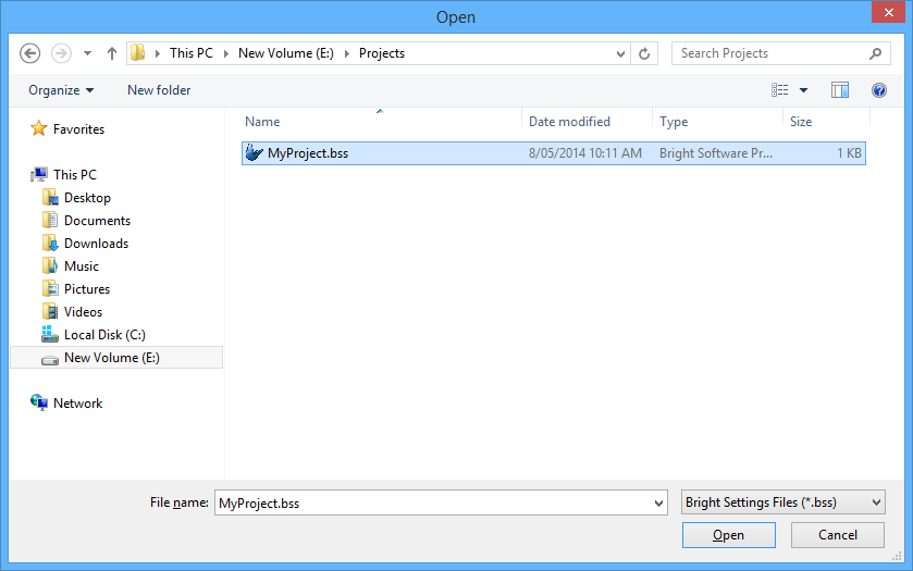 Select the .bss file to be opened for the shortcut and click open.