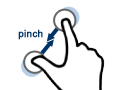 Zooming in and out are achieved by the two finger 'pinch' and 'reverse pinch' multi-touch gestures.
