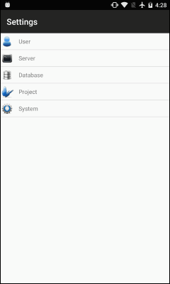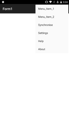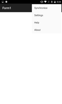 In all forms, pressing the Menu button will open the project menu, enabling access to Settings, Sync, Help and About commands. On devices with physical buttons, but without a physical or software menu button, this button is often replicated by holding the multitasking button.