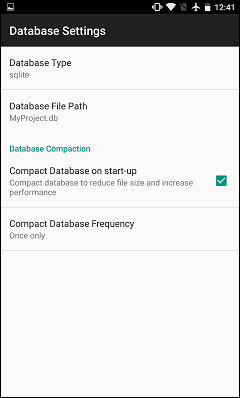 If the new database file, or sub-folders in the path do not exist, they will be created with the database file on startup, if they do not exist. If the database file or path is inaccessible, BrightForms on Android will not start, and display an error message. If displayed, the menu button may be tapped to correct the database path, or back may be tapped to exit BrightForms.