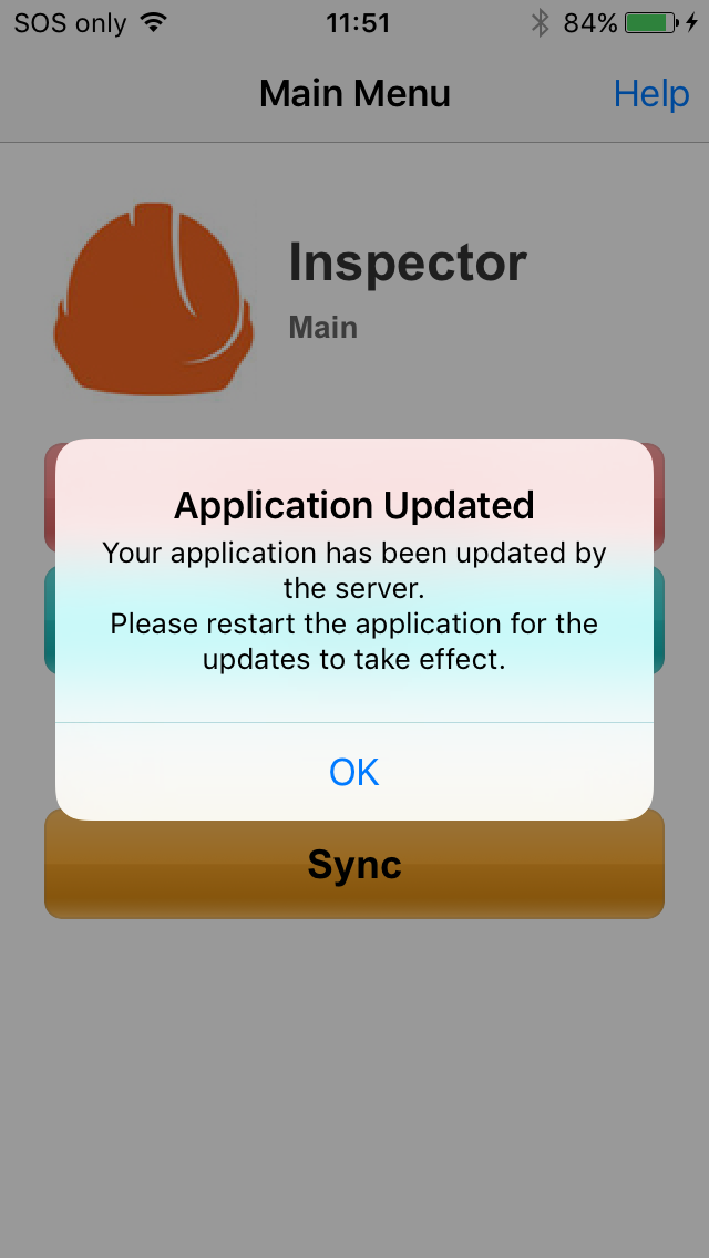 On successful application distribution, a 'Reload' icon will display in the place of the close button if the form is the projects first or 'main' form. Tapping this button will restart BrightForms with the new application retrieved from the server.