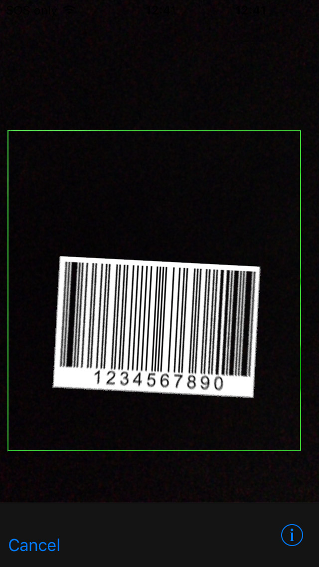 Barcode scanning in iOS is performed using the device's camera. When the Scanner.Scan() method is called, the camera's output will load on the device's screen for the user. Both 1D and 2D barcodes may be scanned.