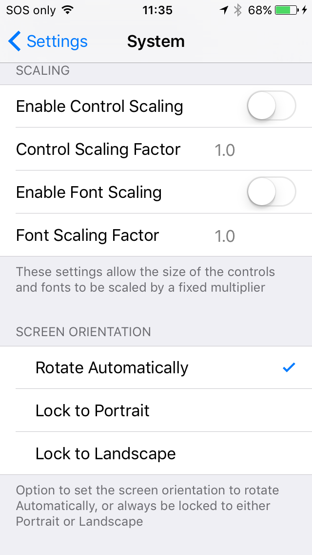 This lock does not apply to BrightForms' settings screens, which will always display based on the orientation of the device.