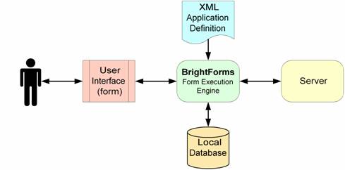 BrightForms is the form execution engine that processes the application definitions created using BrightBuilder. An application definition contains the description for the forms, reports, database, data exchange rules and the bitmap images used in an application.