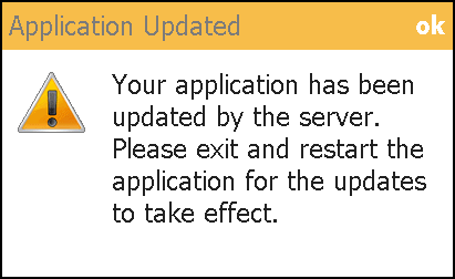 Every time BrightForms connects with the server, a check is performed to see if a newer version of the project is ready for distribution to the user. If so, then BrightForms will receive the new application definition file, and prompt the user to close and restart the application for the updates to take effect, as shown by the dialog below,