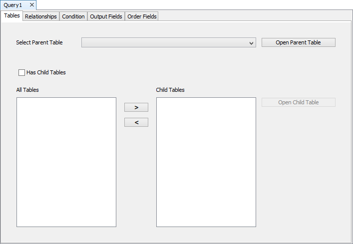 The set of data from the tables in the project are defined by Queries, and may be on set or parameterised conditions for table data. Queries should be limited to standard or advanced types for BrightServer reports. These queries may be found under the Queries node of the BEP project, are defined exactly the same way with the BSP Query Editor, and are even able to be directly copied and pasted to/from existing BSPs.