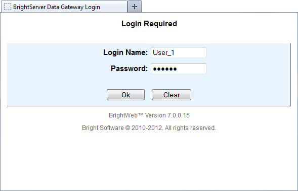 Opening this page in a browser will direct the user to the following BrightServer Data Gateway Login page:
