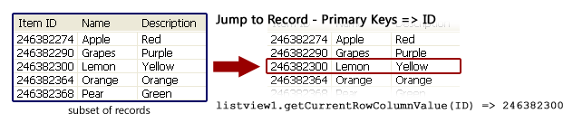When opening a cursor form, the ‘Jump To Record – Primary Keys’ feature may be used. It is set by the parent form of an application, using the ‘Open Form’ dialog, and is available when the form is a cursor form. A common use could be when a record has been selected in a listview and the cursor form is used to display the full record details.