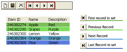 The buttons visible and accessible on a cursor bar is determined by its functionality, set under the Data Binding tab. The cursor bar below on the right for example, allows the user to create, modify, delete and navigate records.