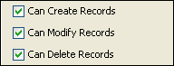 Creating records - Allows the form to create records, which can then be saved by clicking the ‘Save’ button. If an existing record is modified in the same manner, an error will appear unless the ‘Can Modify Records’ option is checked.