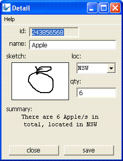 In the ‘Detail’ form, use data binding with qItemFilter to load the ID, NAME, PICTURE, QTY and LOCATION output of the parameterised query into the id_field, name_field, sketch_field, qty_field and loc_field controls respectively. Set the parameter for this query in the ‘Main’ form.
