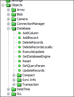 Writing to the database through expressions is handled by the Database object and its methods in the data source tree, located under Objects > Database. As seen below, there are numerous methods available for use, however, in this tutorial we will cover using the object for add, modify and delete functionality and the methods associated with this.