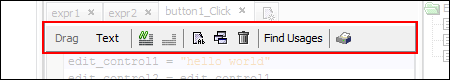 A control dragged and dropped on a new line is assumed to be an assignment by default, with the assigned value as ‘???’ – a placeholder for a value. This signifies a value needs to be assigned to it, and as is will not be a valid expression. Values may replace this holder by a drag and drop over it, or if the type is fixed, by a double click.