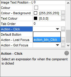 If an expression is created via double clicking a control in the form layout tab, it is automatically linked to the 'Action - Click' property.