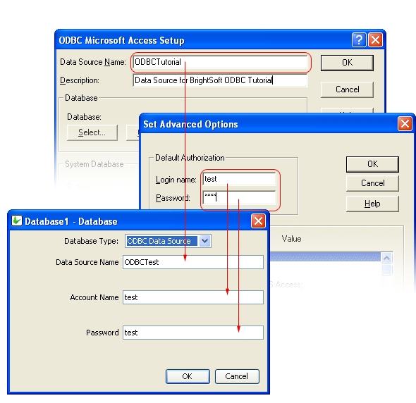 With these values set up you have created a new ODBC source. To read from/write to this source via BrightBuilder, you need to modify the .bep project file as follows: