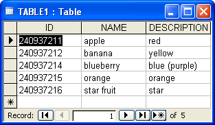 Download and open ODBCTutorialStart.bep. This is the starting point of this tutorial. The file is a simple BrightServer project, with TABLE1 copied from the ODBCTutorial.bsp application. The ODBCTutorial.mdb file is a Microsoft Access Database file, with the equivalent table definition, as well as 5 records.