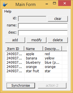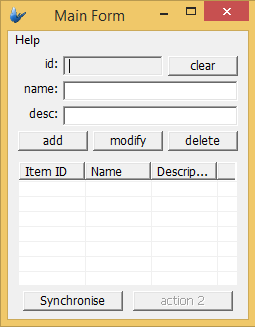 Upon loading the application in ODBCTutorial.bsp, there will be no values in the listview. Press the synchronise button.