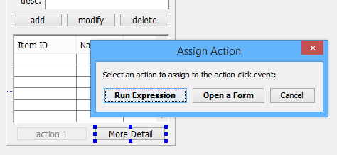 Pre-Open/Post-Close expressions which are in the parent form and use the parent’s data sources may also be assigned, under the Pre-Open and Post-Close Expression menus. If expressions need to be done in a similar way but with the child’s data sources, the expression should be in the child and the child form’s Action Properties should be used.