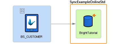 Databases may thus be defined as regular sync points, but also be enabled for stored procedures and other types of online queries at the same time. Demonstrated below are two queries, 'SyncSendCustomers', a standard query sync process, and 'SyncExampleOnlineStd', an online synchronisation. As they both operate on the same database, they may be contained in one sync point, but in fact, many different types of syncs may be performed with online querying.