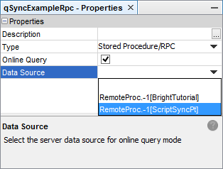 While this process will define that a stored procedure or a RPC will be used, it does not define which one will run, and on what data source. For this to be established, the query's Data Source from BrightServer needs to be defined, and these sources need to be discovered for the project. If no source is specified, the server's default data source will be used.
