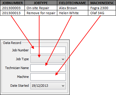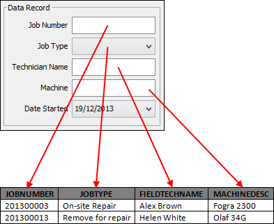 Load mapping populates the form controls with the data from a table record, allowing the user to view all the relevant fields of that record at once, refer to the following figure: